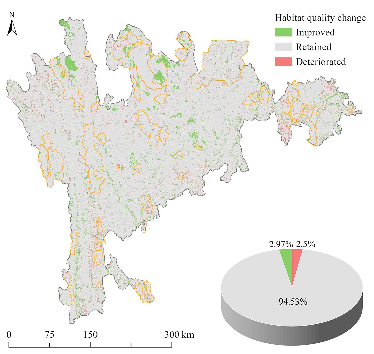 2 横断山南部2007-2021年生境质量变化空间分布图