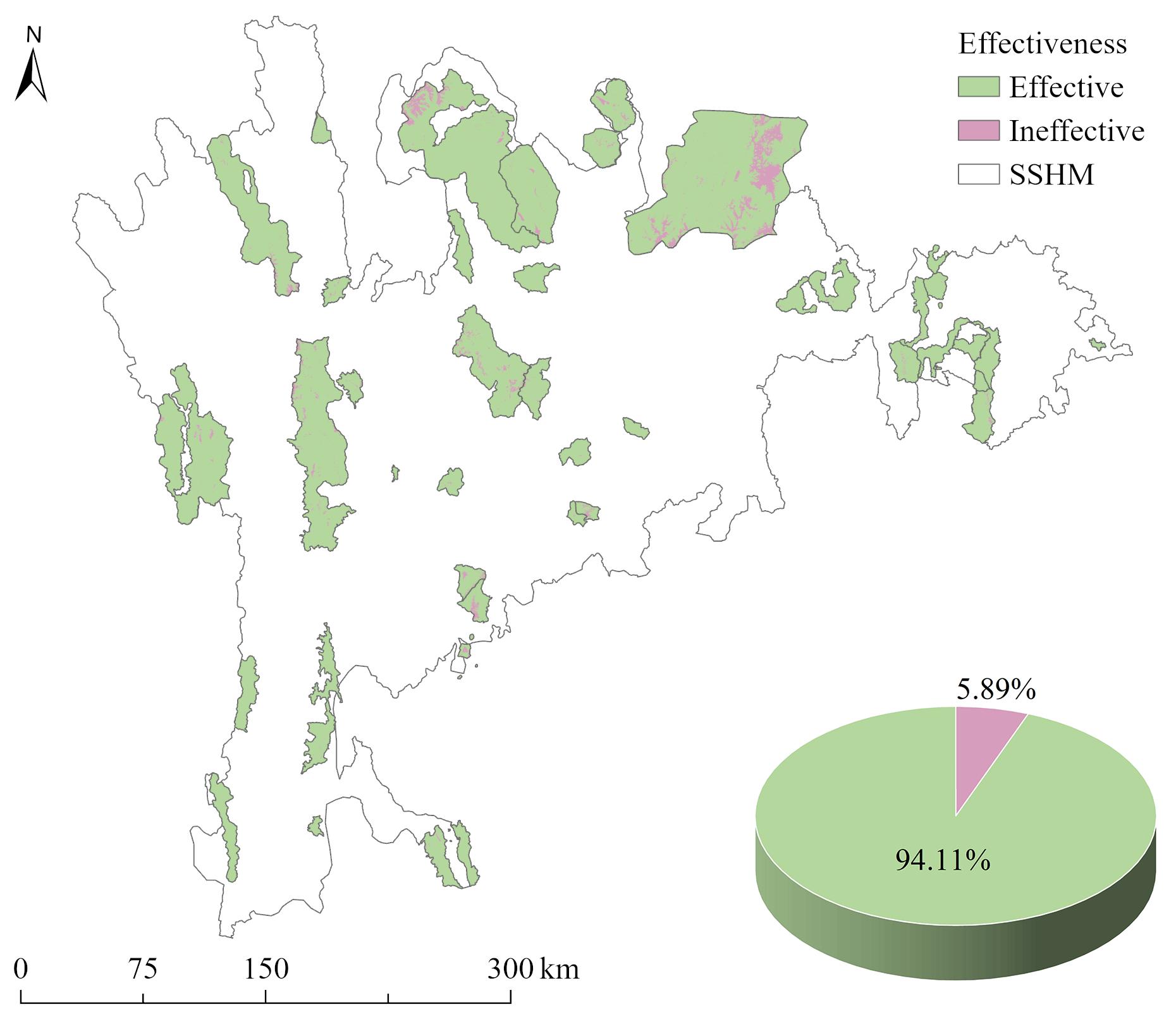 3 基于生境质量的横断山南部自然保护区保护有效性评价结果
