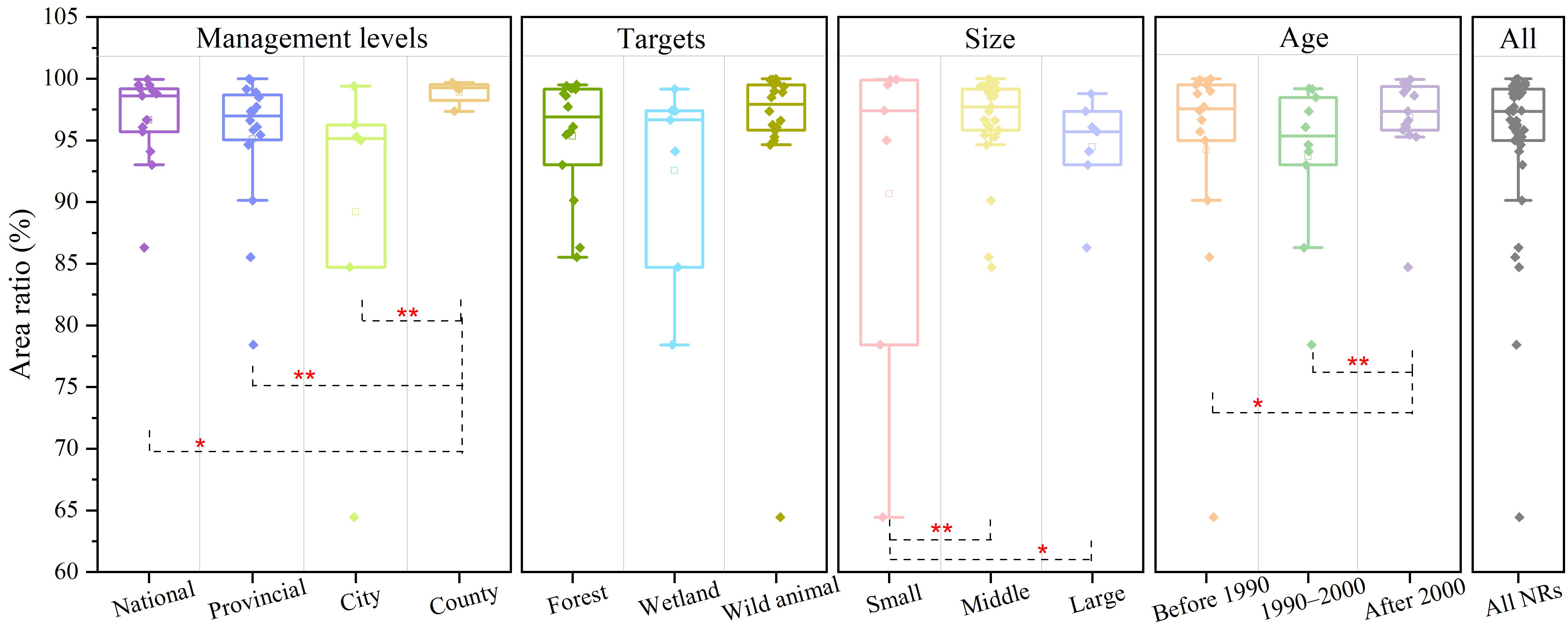 在我国,自然保护区是自然保护地网络的重要组成部分,自1956年第一个自然保护区建立以来,自然保护区的数量和保护面积持续增加。然而,受到自然保护区的类型、位置、保护时长、人类活动压力、管理有效性和资金支撑力度等等方面的影响,自然保护区是否起到了保护作用引起广泛关注。因此,开展自然保护区的保护有效性评价,对于合理且有效地管理自然保护区、促进生境完整性保护和减缓生物多样性丧失具有重要意义。