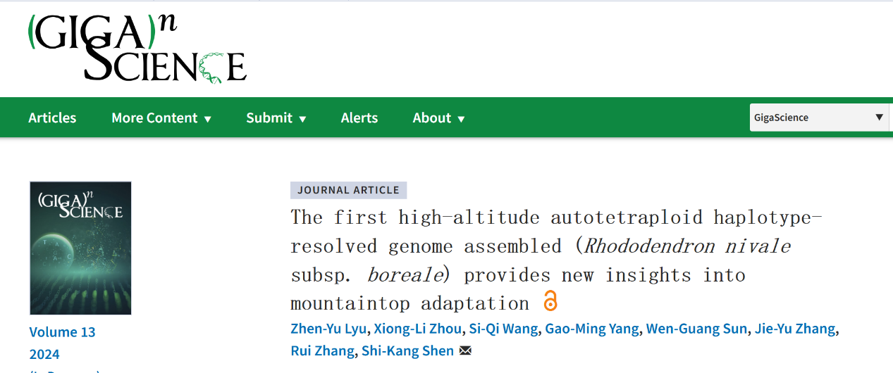 研究结果以“The first high-altitude autotetraploid haplotype-resolved genome assembled (Rhododendron nivale subsp. boreale) provides new insights into mountaintop adaptation”为题,发表于国际期刊Gigascience (IF=11.8)。bat365中文官方网站博士研究生吕振宇为该论文的第一作者,申仕康教授为通讯作者。研究得到国家自然科学基金、中央引导地方科技发展专项、云南省基础研究重大项目、bat365中文官方网站研究生科研基金及云南省教育厅科研基金资助。