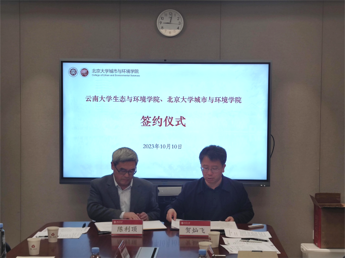 2023年10月10日,bat365中文官方网站与北京大学城市与环境学院在北京签署生态学学科对口合作工作协议。由我院院长陈利顶研究员带队,常务副院长张志明教授、副院长耿宇鹏教授、植物学与动物学系主任杨明挚教授、生态学系主任周睿副教授一行赴北京大学城市与环境学院进行交流访问,并举行合作协议签约仪式。北京大学城市与环境学院院长贺灿飞教授、党委书记彭建教授、副院长王志恒教授、副院长曹广忠教授、党委副书记金鑫、副院长刘萍、党政综合办赵卡娜和科研办汪淼等老师参加了此次活动。