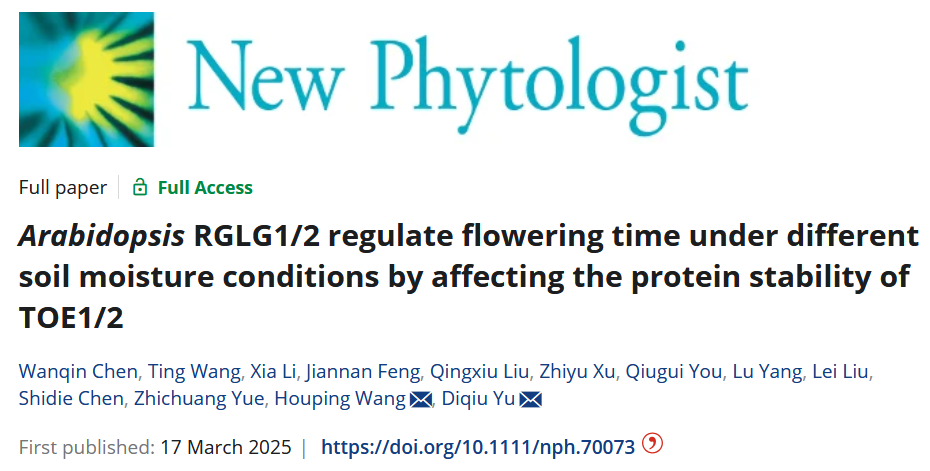 bat365中文官方网站余迪求研究团队揭示拟南芥RGLG1/2-TOE1/2信号在不同土壤水分条件下调控开花的新机制