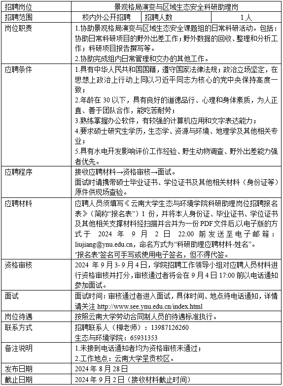 科研助理招聘