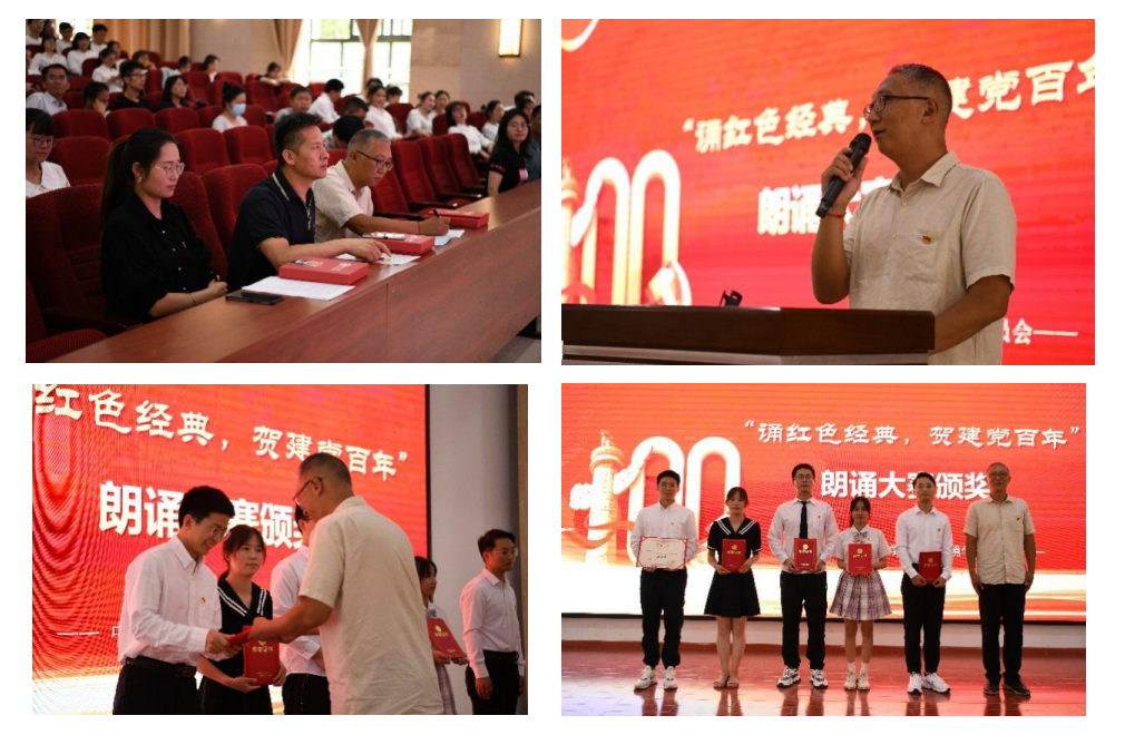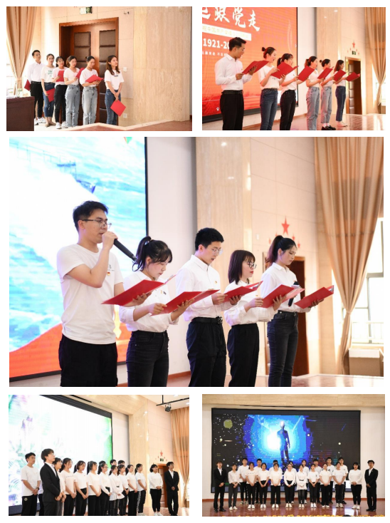 表彰大会结束后,“诵红色经典,贺建党百年”——bat365中文官方网站庆祝中国共产党成立100周年主题朗诵大赛正式拉开帷幕,各支部代表上台诵百年辉煌、凝聚奋进力量。学生第一党支部的《永远跟党走》、学生第二党支部的《红船,从南湖起航》、学生第三党支部的《祖国啊,我亲爱的祖国》、资源植物研究院学生党支部的《我骄傲,我是中国人》以及bat365中文官方网站团委的《青春中国》,朗诵出对祖国的赤子之心,抒发了党员们的爱国情怀;诵读出对党的深情热爱,讴歌中国共产党百年征程的辉煌成就!最后,由党委书记廖峻涛宣读获奖名单并为获奖支部颁奖。建党100周年“七一”表彰大会暨“诵红色经典,贺建党百年”朗诵大赛在全场党员同志一起合唱《歌唱祖国》中落下帷幕。